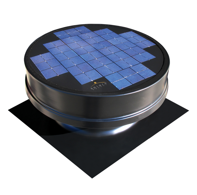 The Solaro Aire™ is the world’s most advanced, fully integrated, high efficiency Solar Powered Attic fan. During the hot summer months, your attic can reach temperatures of up to 160°F, making your home warm & uncomfortable. The Solaro Aire™ extracts the heat from your attic, keeping the temperature and your AC bills down! A great replacement for the noisy turbine vents.